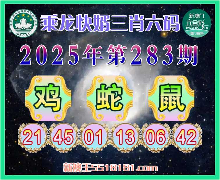 283期:【乘龙快婿】 👩🌾三肖六码👩🌾【鸡蛇鼠】开:鸡45准